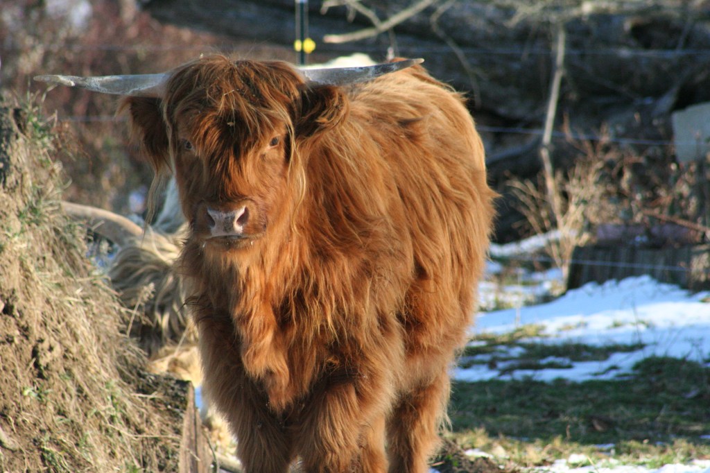 A little known fact about Highland breeders is that they don’t call their herd a herd. It is called a Fold of Highland cattle because, in the olden days in winter the cattle were brought together at night in open shelters made of stone, called Folds, to protect them from the weather and wolves.